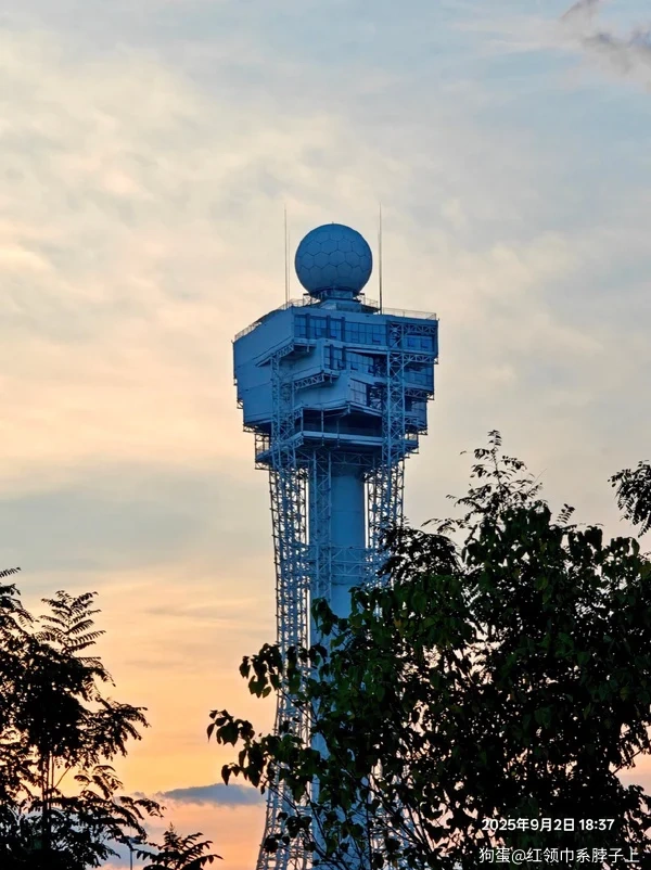 黄昏中的气象塔。