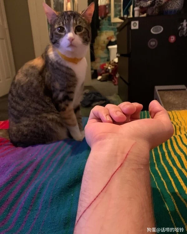 怎么了,为什么看着我,划伤你的猫也是戴着头盔吗