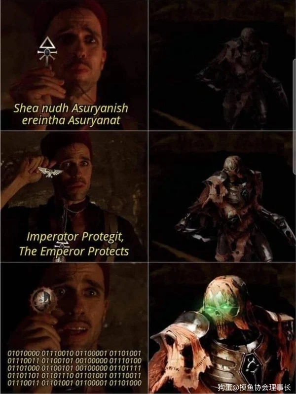 最下面那堆二进制是ASCII码的 Praise the omnissiah