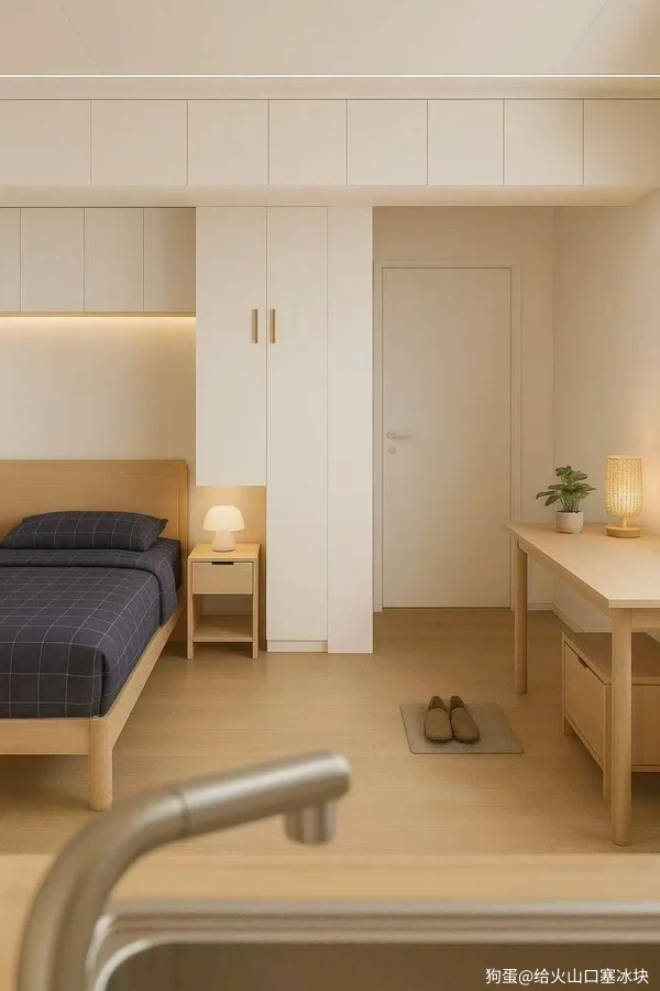 本来桌子下面那个画柜子的地方是个小冰箱