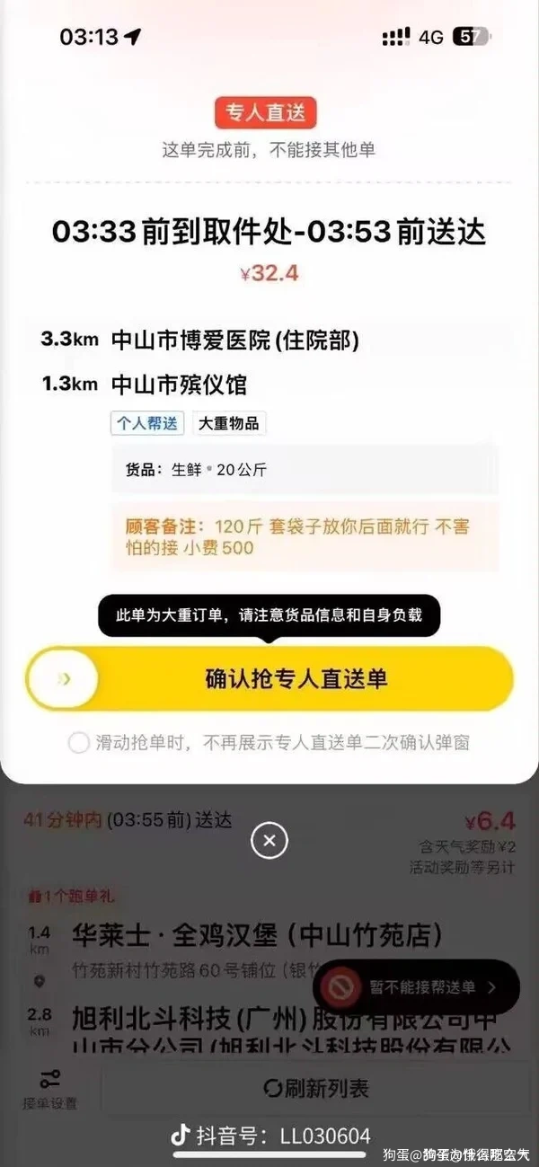中山人来吃瓜了,上一次见到类似的单,是我一初中同学当骑手,接了一个麦当劳的单送去我家附近的一个坟场