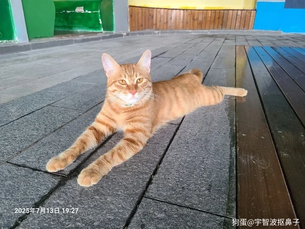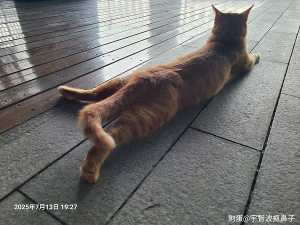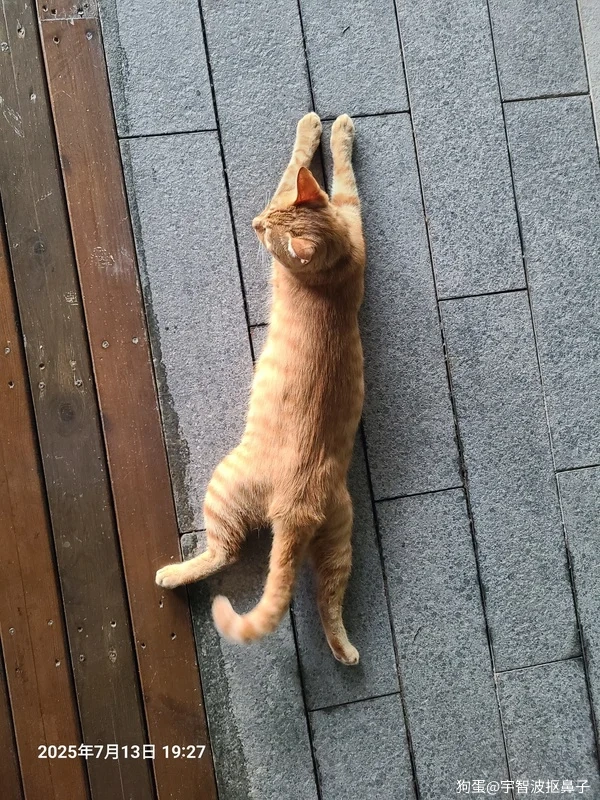 因为实在太热了,只能尽量把肚皮贴到地面上。