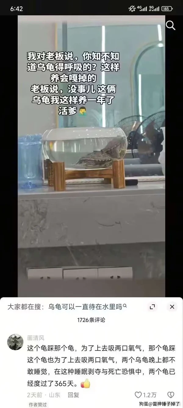 真是见识少怪事才多,担心乌龟淹死不如担心水少会渴死,去年寒假回老家过年了,因为担心水结冰冻死乌龟,就把鱼缸的水放了,一个月后回家渴死了一只,真的成标本了。要是会淹死的话我们家的早被淹死了,我那个鱼缸比图片里面这个大多了,水也比这个放得多。