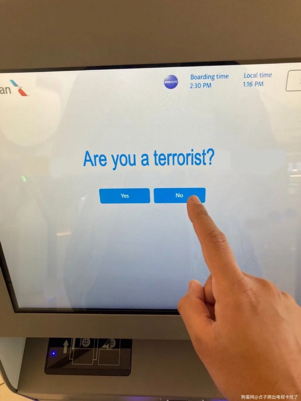 行为识别系统(如 SPOT):在你点击“否”时,系统可能会同步分析你的面部表情、眼动、语音语调、肢体动作等,判断你是否在说谎。 生物特征采集:触屏可能配有摄像头或指纹识别装置,在你操作时采集生理数据,用于比对数据库或进行风险评估。 心理压力测试:某些系统会在你回答问题时故意制造时间压力或环境干扰,以观察你的反应是否异常。 多层次数据交叉验证:你的回答只是一个触发点,真正的判断来自于后台系统对你的身份信息、行为特征、历史记录等进行综合分析。